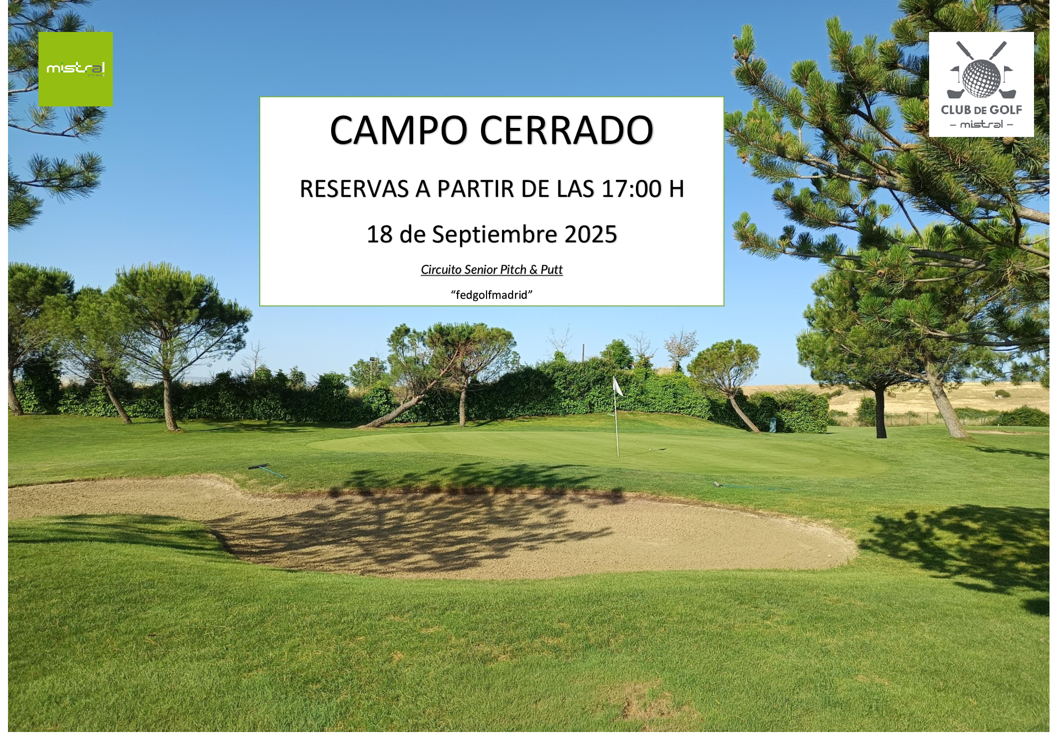 Estimados jugadores, Debido a los tratamientos a realizar en los greenes os informamos que el Jueves 05 campo permanecerá CERRADO hasta las 12:30. Estos tratamientos son necesarios para el mantenimiento…