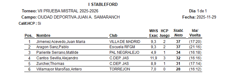 RESULTADOS COPA MISTRAL 29.11.25 STABLEFORD III RESULTADOS COPA MISTRAL 29.11.25 STABLEFORD III Por edicion|2025-12-01T13:11:15+00:00diciembre 1st, 2025| Más información