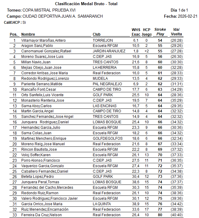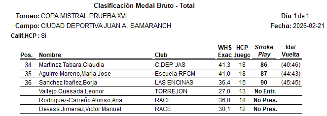 RESULTADOS COPA MISTRAL 21.02.26 STABLEFORD I RESULTADOS COPA MISTRAL 21.02.26 STABLEFORD I Por edicion|2026-02-22T08:41:00+00:00febrero 22nd, 2026| Más información